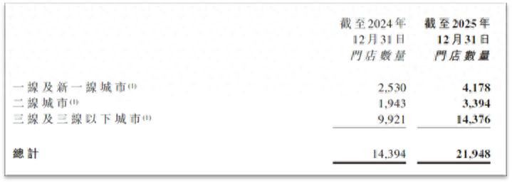 从门店散播情况来看,一线及新一线城市门店数目达4178,二线城市门店数目达3394,三线及三线以下城市门店数目达14376。其中约60.0%的门店布局于县城及州里市集,门店麇集已隐私1401个县,县域市集隐私率达到约 75.0%,在低线市集变成了显赫的密度上风与品牌壁垒。