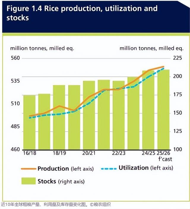 而与之相对的是,需求侧却呈现出疲软的景色。2025年天下大米产量展望增长2.0%,达到创记录的5.633亿吨,主要由孟加拉国、巴西、中国、印度和印度尼西亚鼓动。印度当作天下大米出口大国,2026年4月中央储备池中的小麦总供应量高达1820万吨,远超安全红线,已批准出口250万吨小麦和50万吨大米成品,一定经过上缓解了天下供应压力。连合国粮农组织(FAO)在2月时也预测,2025/26年度天下大米买卖量展望为6060万吨,较上年度减少0.7%。3月,粮农组织大米价钱指数下落3.0%,主要受新季收获时点、入口需求疲软以及多国货币对好意思元贬值等身分共同影响。
