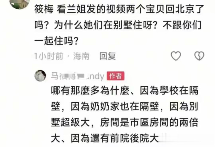 玥儿和箖箖回北京也有十多天了,张兰天天守着俩孩子,一大家子热热闹闹的,玩的时候痛痛快快玩,学习也半点没落下。之前马筱梅说孩子没跟她和汪小菲住一起,是因为奶奶家离学校近,房子大还有前后花园,当时还有不少人揪着这点质疑,可这次参观学校的事儿,直接把所有疑问都打消了。