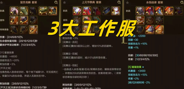 再往后就是3大职责服“复苏套、不朽套、上元节套”,伤害属于100%揣测标杆的位置,