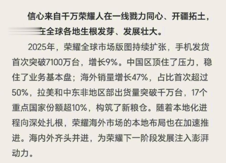 更为恐怖的是其出海获利单,国外阛阓销量竣事了近乎腰斩式的超越增长,国外业务占比在品牌历史上初次梗阻了半壁山河。这意味着荣耀也曾透顶开脱了国内极端内卷的单一泥潭,到手在欧洲、拉好意思及中东等高利润阛阓站稳脚跟,确凿意旨上成长为一个具备众人造血智商的跨国巨头。这种基本盘的分化,施行上是企业政策目光的相反。