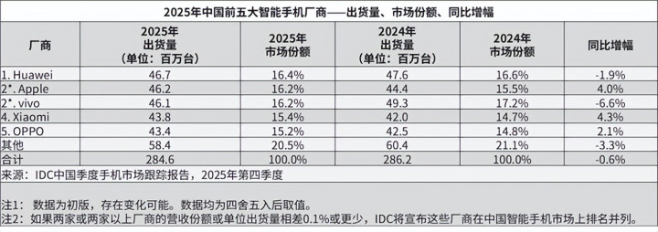 在推敲两家头部智高手机厂商的的确身位前,最客不雅的标尺莫过于真金白银的阛阓数据。证据IDC此前发布的 2025 年全年智高手机阛阓叙述,中国大陆阛阓在泼辣的存量博弈中交出了 2.85 亿部的最终答卷。