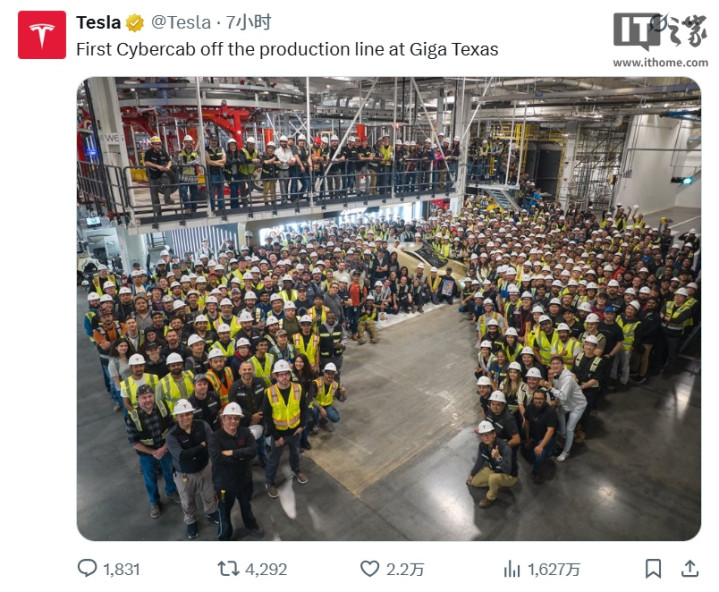 “祝福特斯拉团队造出第一台量产版Cybercab!”特斯拉首席本质官埃隆·马斯克在X平台上默示。