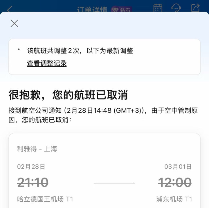 董先生从沙特利雅得直飞中国上海的航班被取消