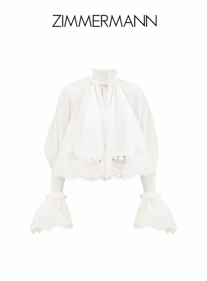 董洁穿的这件白色衬衣是ZIMMERMANN的,这件白色衬衣的下摆处亦然蕾丝贪图,很丽都的一件衬衣,春天很符合单穿这件衬衣,文静的绝不吃力。然而这件衬衣要一万块,它很漂亮,但照实很贵。