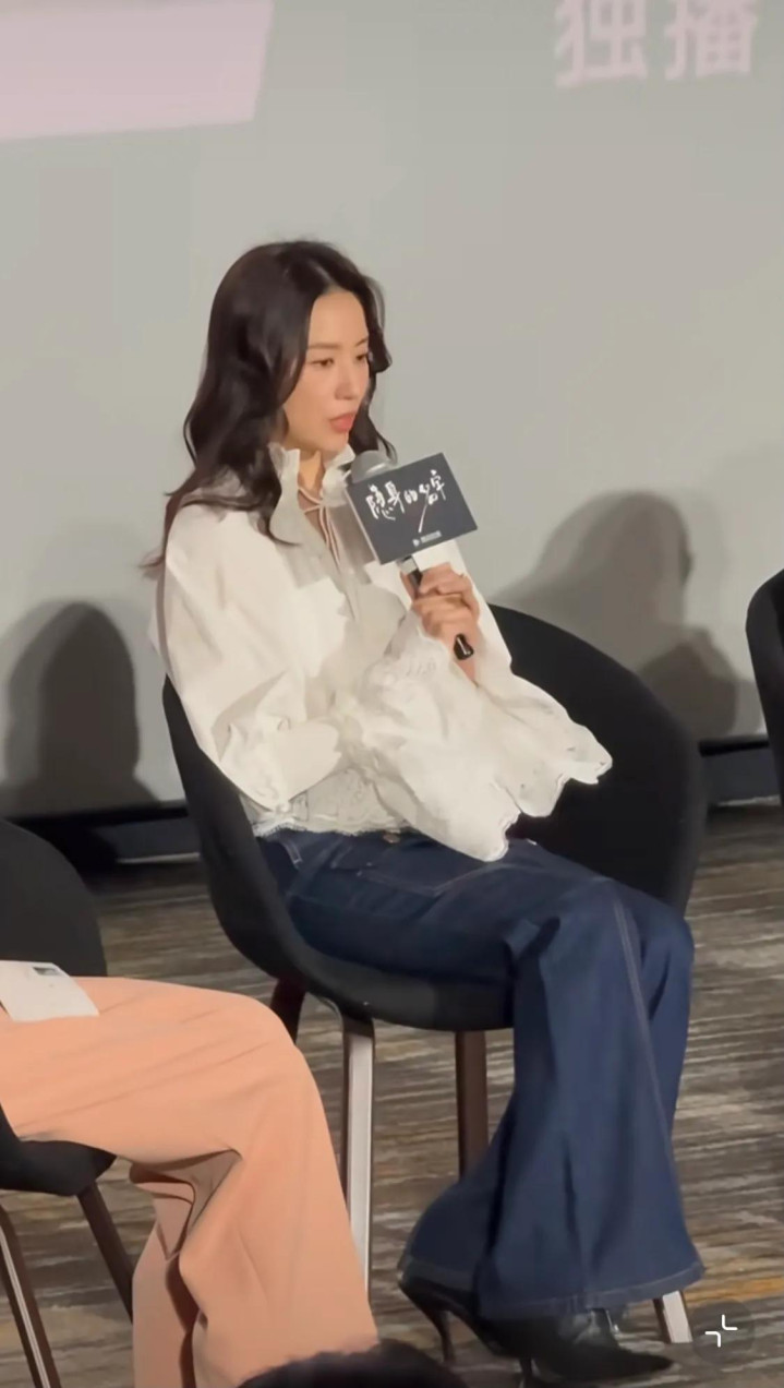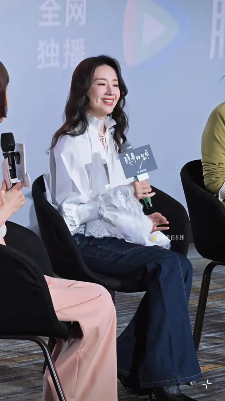董洁和闫妮一谈出席新剧《隐身的名字》首映动作,鲁豫主合手,董洁身穿一万块花边白衬衣,清纯文静,45岁的董洁好意思的在发光。董洁身穿藏蓝色阔腿裤搭配细跟高跟鞋,只消160cm的她,看起来有175cm,高挑纤细,她的衣品真好!