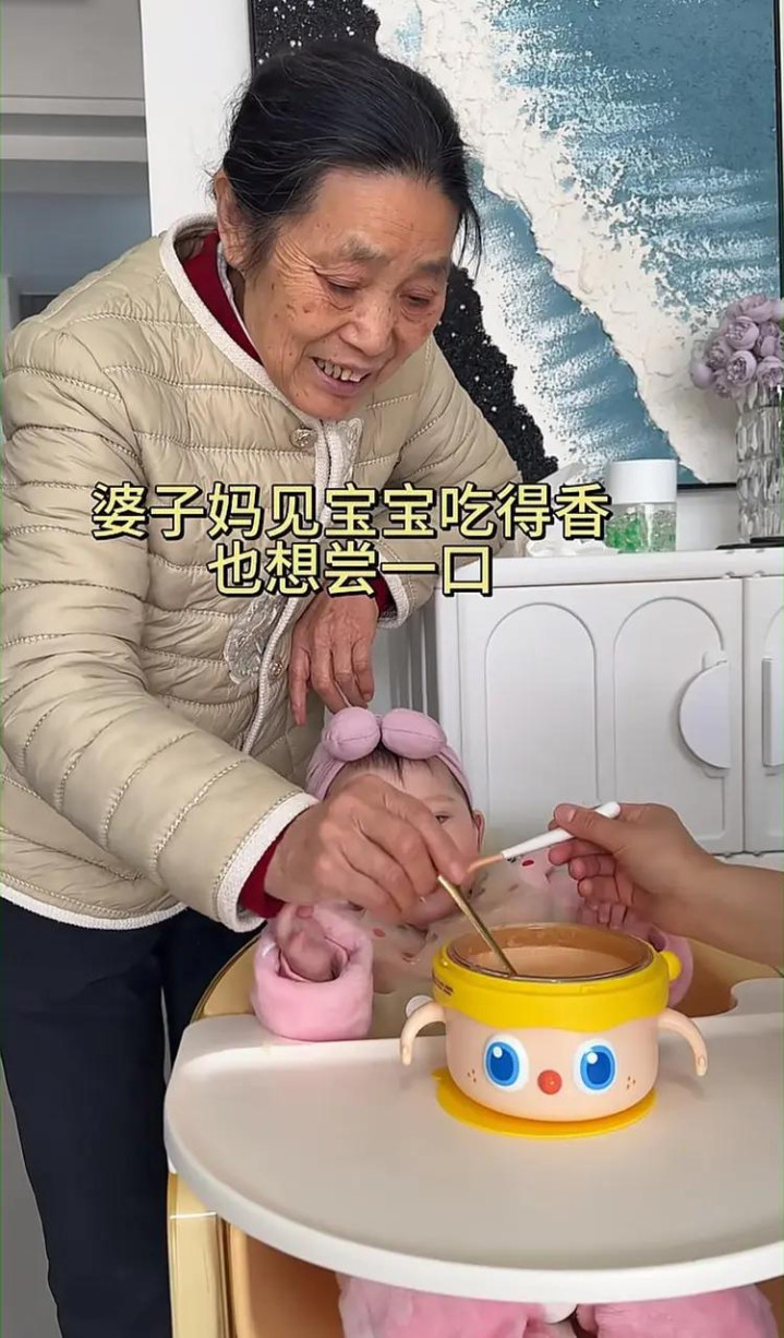 73岁婆婆和婴儿抢食吃,是老东谈主太馋了?如故儿媳妇太打门了?