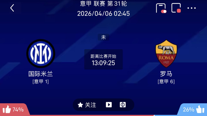 周日024意甲:海外米兰 VS罗马技术:2026-04-06 02:45