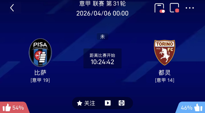 周日021意甲:比萨VS齐灵技术:2026-04-06 00:00
