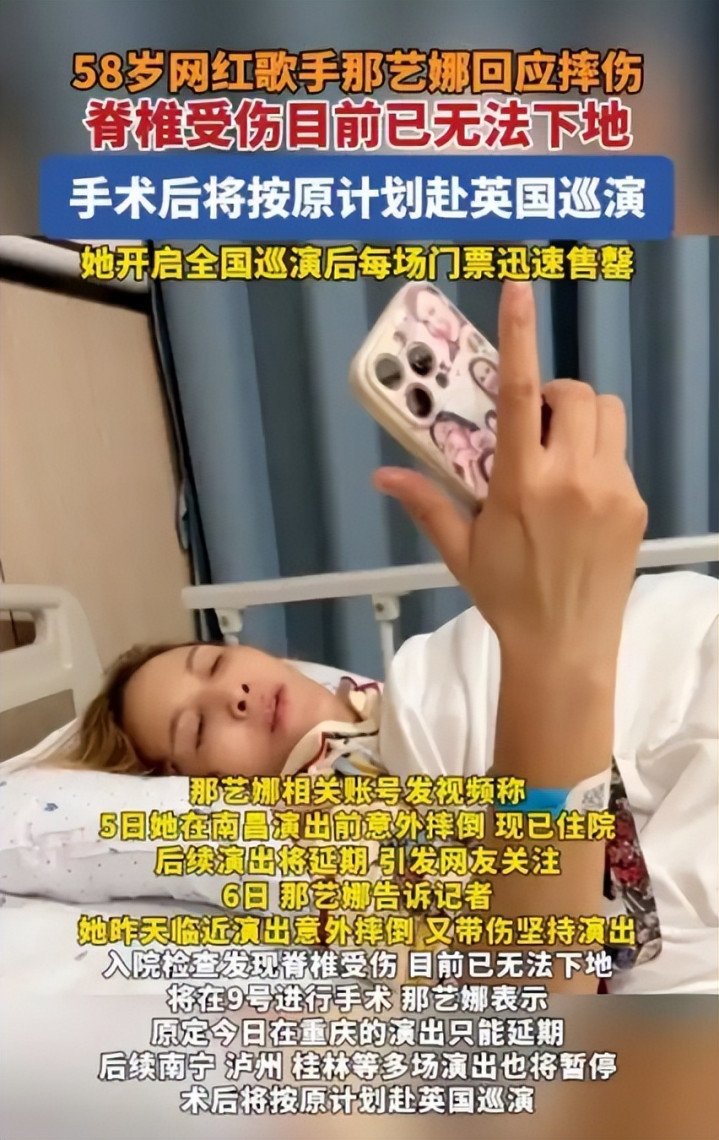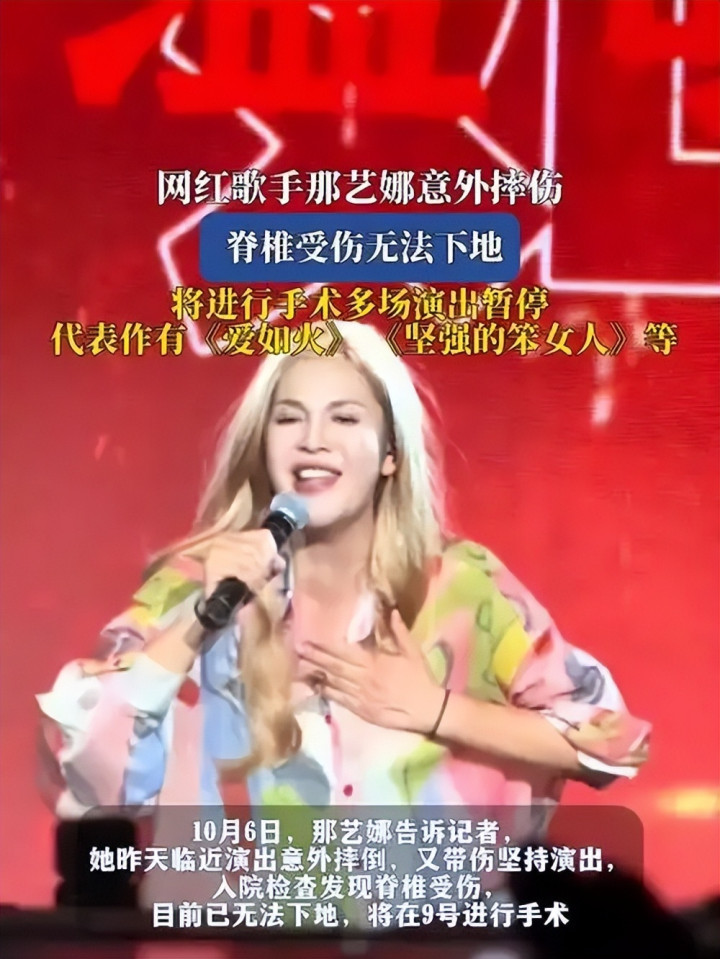 2025年10月5日,她在南昌演出前意外摔倒,却没有停下来,仍然带着伤坚持把演出唱完了。