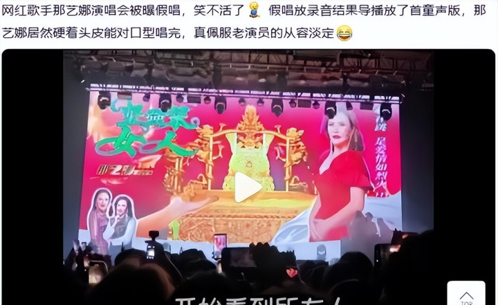 更尴尬的是,那艺娜后来在现场被逼无奈清唱了几句想证明自己真的会唱歌,结果这举动反而坐实了之前确实在假唱的事实。
